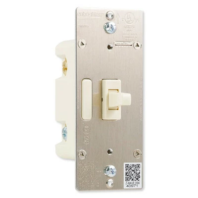 The Enbrighten Z-Wave Plus In-Wall Smart Toggle Switch With QuickFit™ And SimpleWire™, Light Almond replaces a standard switch with a Z-Wave Plus smart switch that adds local and remote control for connected loads. The toggle switch provides On/Off control for single or multi-way lighting or small appliance installations, can be included in Z-Wave automation groups or scenes, and is Amazon Alexa and Google Home compatible. Additionally, a blue LED indicator helps you find the switch in the dark.