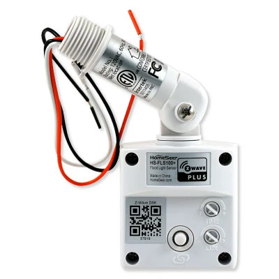 Improve your smart home security by installing the HomeSeer HS-FLS100+ G2 Z-Wave Plus Floodlight Sensor. This floodlight sensor can retrofit most motion-activated floodlight fixtures to provide remote, automation control of your floodlights when commands are received from your smart hub. It’s a motion sensor, light sensor, and temperature sensor all-in-one; and, it can be used with 120V incandescent or LED floodlight bulbs.