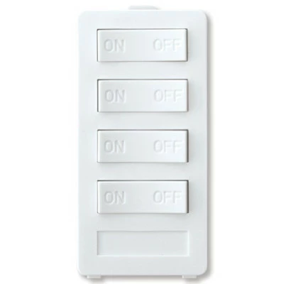 Control four X10 receiver modules using the X10 PRO 4-Button Keypad (4 Address). This keypad attaches to the front of an X10 PRO Wall Transmitter Base Module (XPT, sold separately) to create a custom X10 wall switch. Once installed, the keypad sends On/Off commands to four sequential X10 unit codes.
